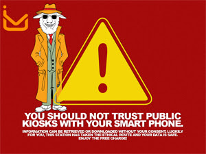 Don't feel too bad for being fooled, though. In 2011, over 360 people fell for the same trick at the DefCon convention in Las Vegas. And in case you've never heard of it, DefCon is a conference for professional hackers and security experts from around the world. That's right: A convention full of actual hackers was easily taken in by this so-obvious-nobody-expected-it ruse. Fortunately, the kiosk was operated by Aries Security, and instead of actually snatching data from everybody's phones, the kiosk displayed an educational message reminding these security "experts" not to plug their phones into a random box at a hacker convention.